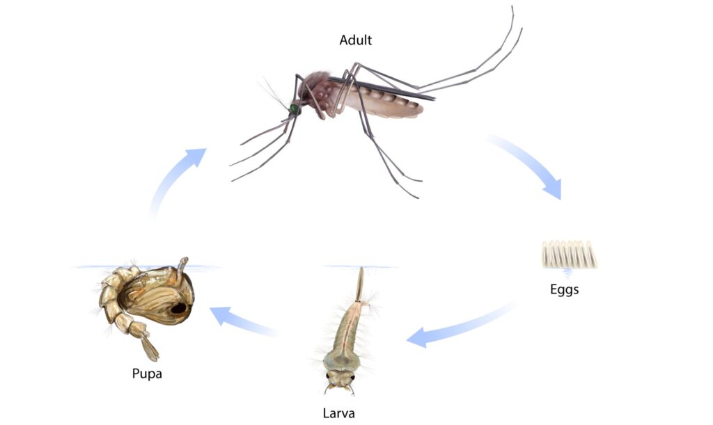 No matter what their preferred breeding habitat, all mosquitoes undergo the same four-stage mosquito lifespan: egg, larva, pupa, and adult, with the larval and pupal stages always being aquatic.